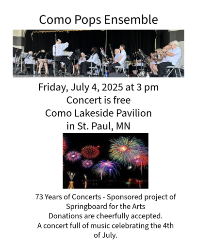 We appreciate your support, and donations can be made to Springboard for the Arts, with "Como Pops" noted in the memo line for tax-deductible contributions.